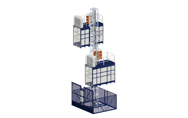 該機可以做到一機多用,是運送鋼筋、混凝土及施工人員的三合一型設備,廣泛應用于電力建設中的煙囪和冷卻塔施工。