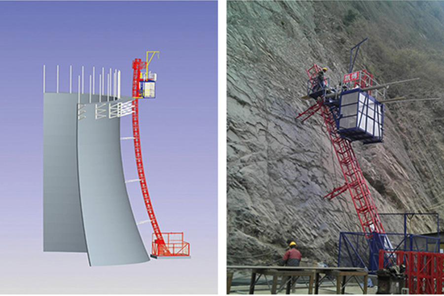 可實現(xiàn)人員、鋼筋、混凝土的垂直運輸;可外掛長度可變平臺,實現(xiàn)人員、物料的水平運輸。廣泛應用于煙囪、水塔、及其他異型建筑。