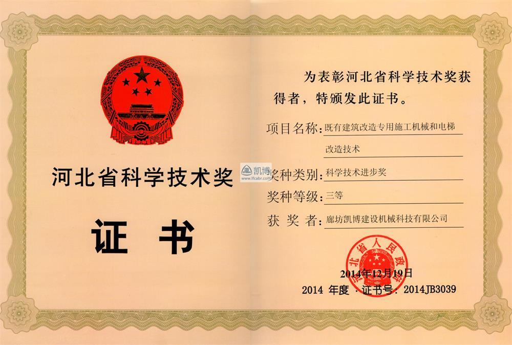 河北省科學(xué)技術(shù)獎三等獎 既有建筑改造施工機(jī)械和電梯改造技術(shù)