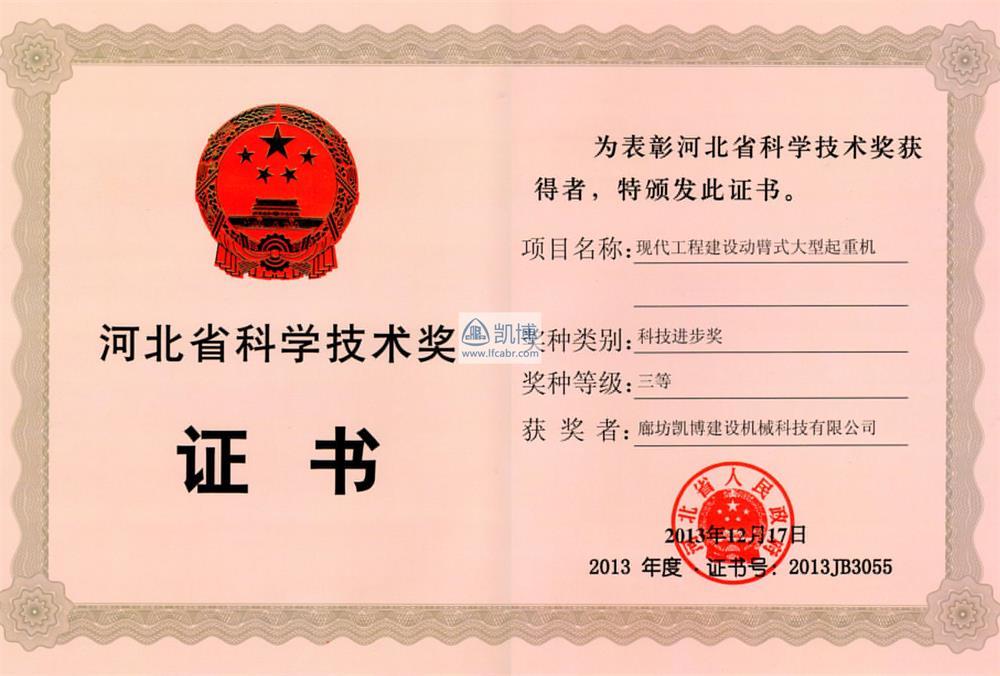 河北省科學(xué)技術(shù)獎三等獎 現(xiàn)代工程建設(shè)動臂式大型起重機(jī)