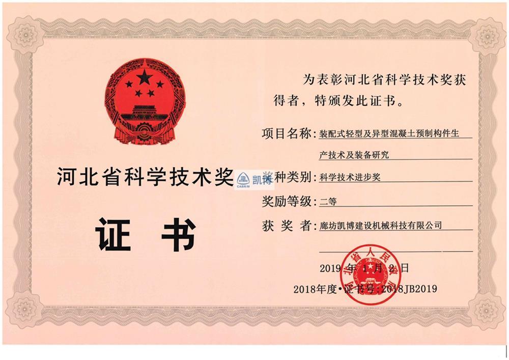 河北省科學(xué)技術(shù)獎二等獎 裝配式輕型及異型混凝土預(yù)制構(gòu)件生產(chǎn)技術(shù)及裝備研究