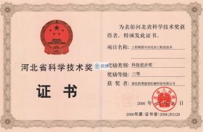 河北省科學(xué)技術(shù)獎三等獎 工程鋼筋專業(yè)化加工配送技術(shù)