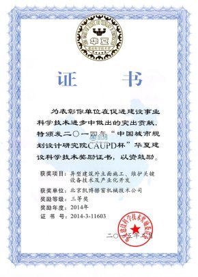 河北省科學(xué)技術(shù)獎三等獎 異型高聳建筑主體施工多功能升降機(jī)