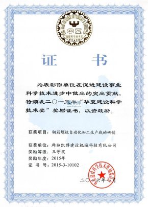華夏建設(shè)科學(xué)技術(shù)獎 鋼筋螺紋自動化加工生產(chǎn)線的研制