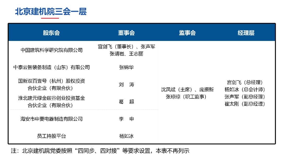 ? ? ? 混改后,北京建機(jī)院由國有全資企業(yè)變更為國有控股混合所有制企業(yè)。其中,中國建研院持股56%,外部投資方合計(jì)持股34%,員工持股平臺(tái)持股10%。北京建機(jī)院的注冊資本由19,000萬元增加至33,928.5712萬元。
